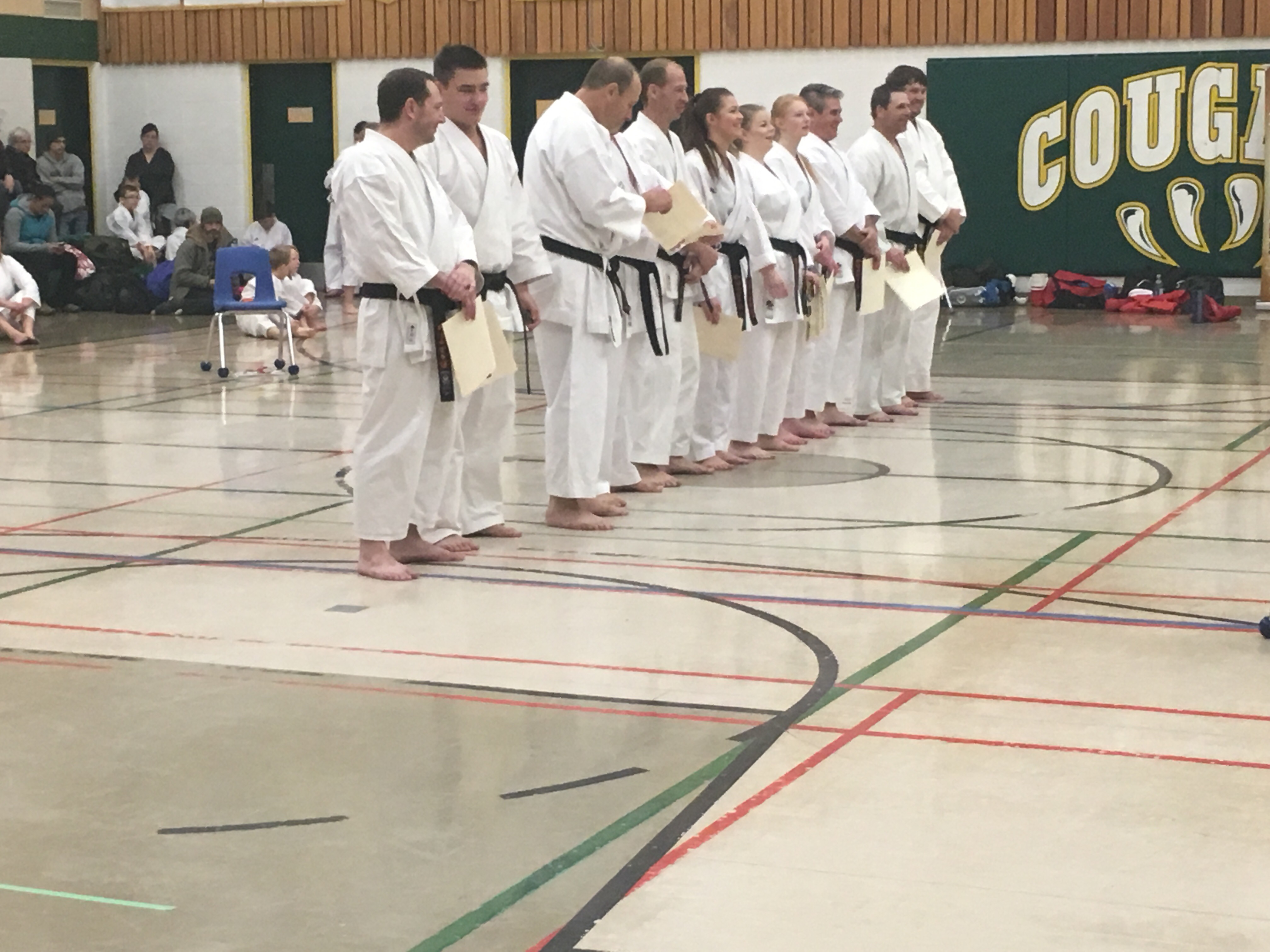 The Clint McFarlane Memorial Trophy is presented annually at our tournament. The recipient is voted on by the black belts and can be anyone involved with the tournament from any club in attendance. In a nut shell, it is presented to that person(s) whom you would most like to be met by Sensei Shintani. This year, the recipient of the Clint McFarlane Memorial Trophy is the Flynn Family from Carlyle – Moose Mountain Wado Kai Karate Club. Congratulations!